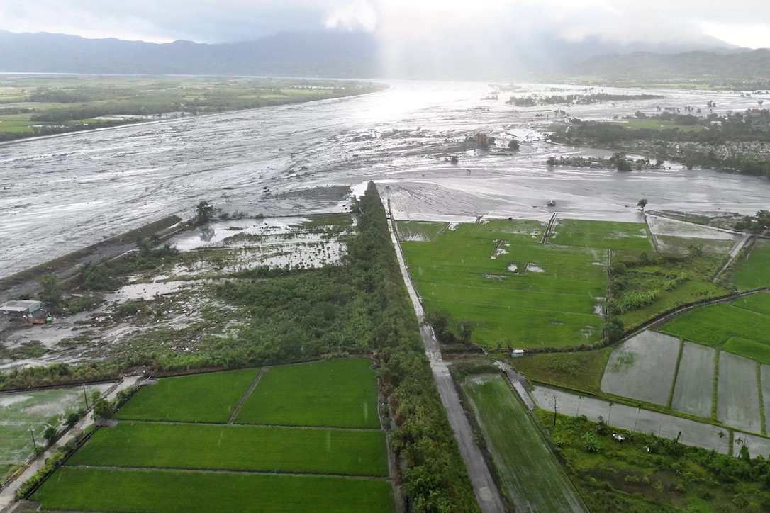 9月23日,樺加沙強颱外圍環流帶來的強降雨,造成花蓮溪潰堤。(攝影:陳榮豐)