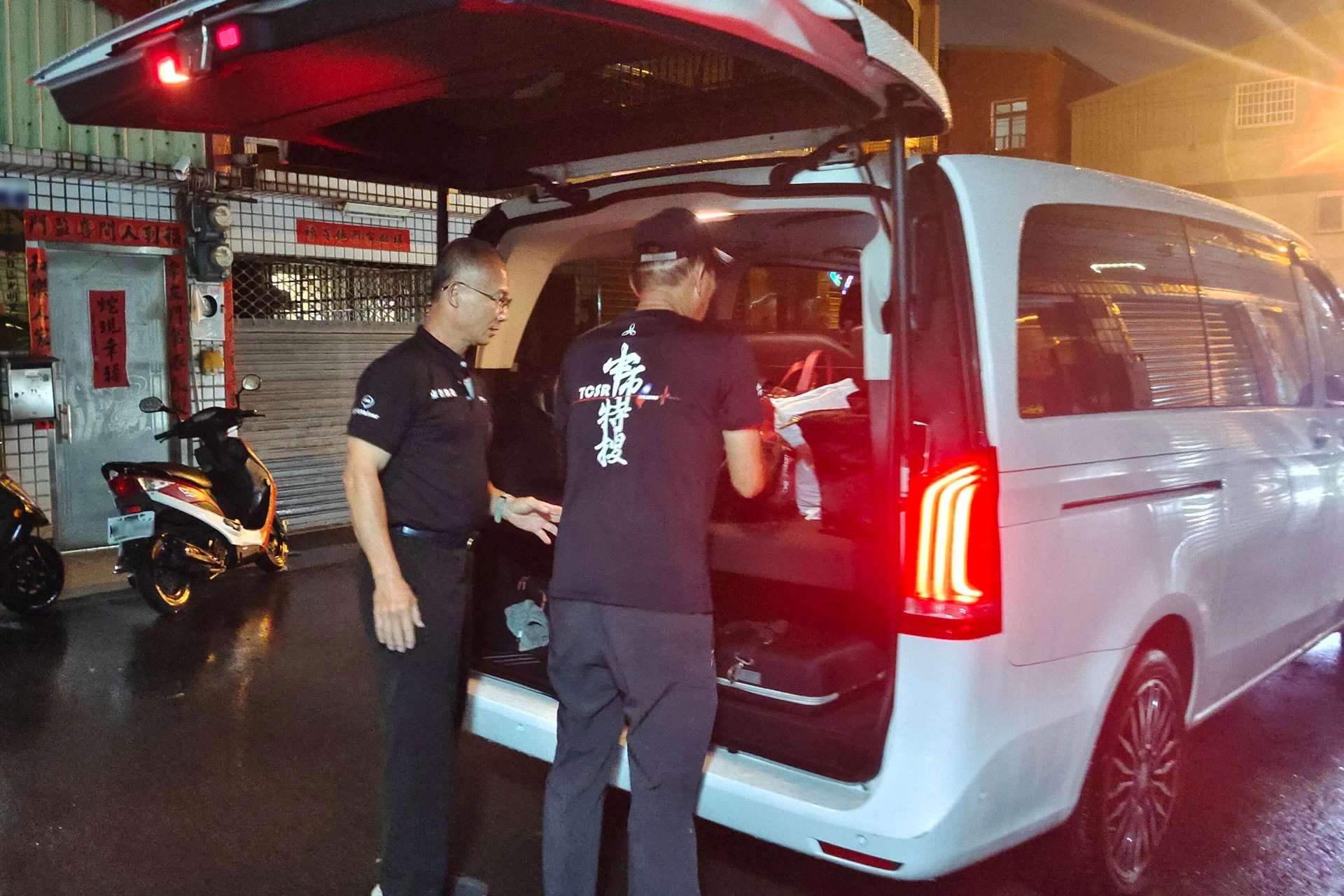 9月23日晚間,張永同(左)從彰化開車至臺中接陳榮豐(右)一同前往花蓮勘災。(攝影:林美宏)