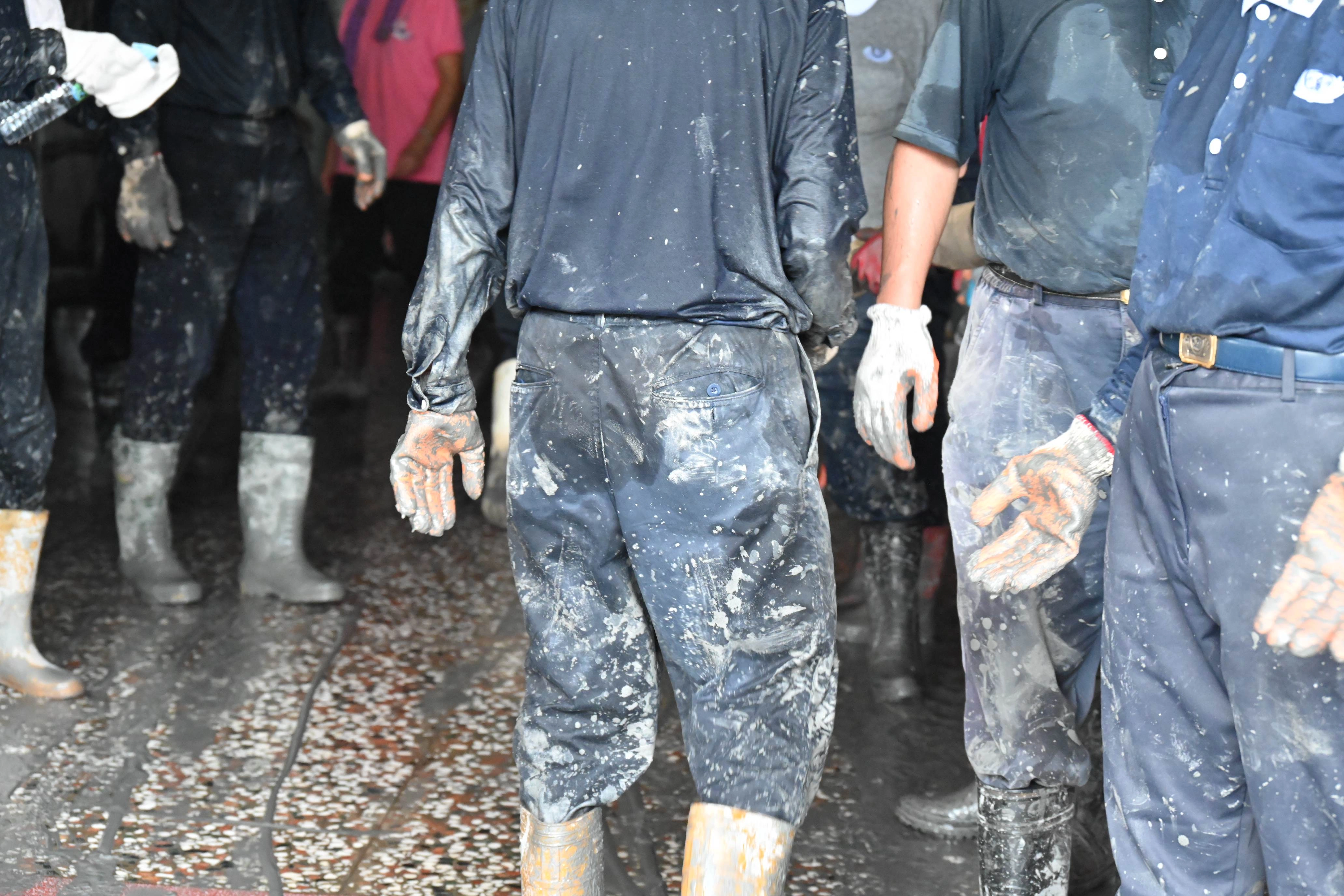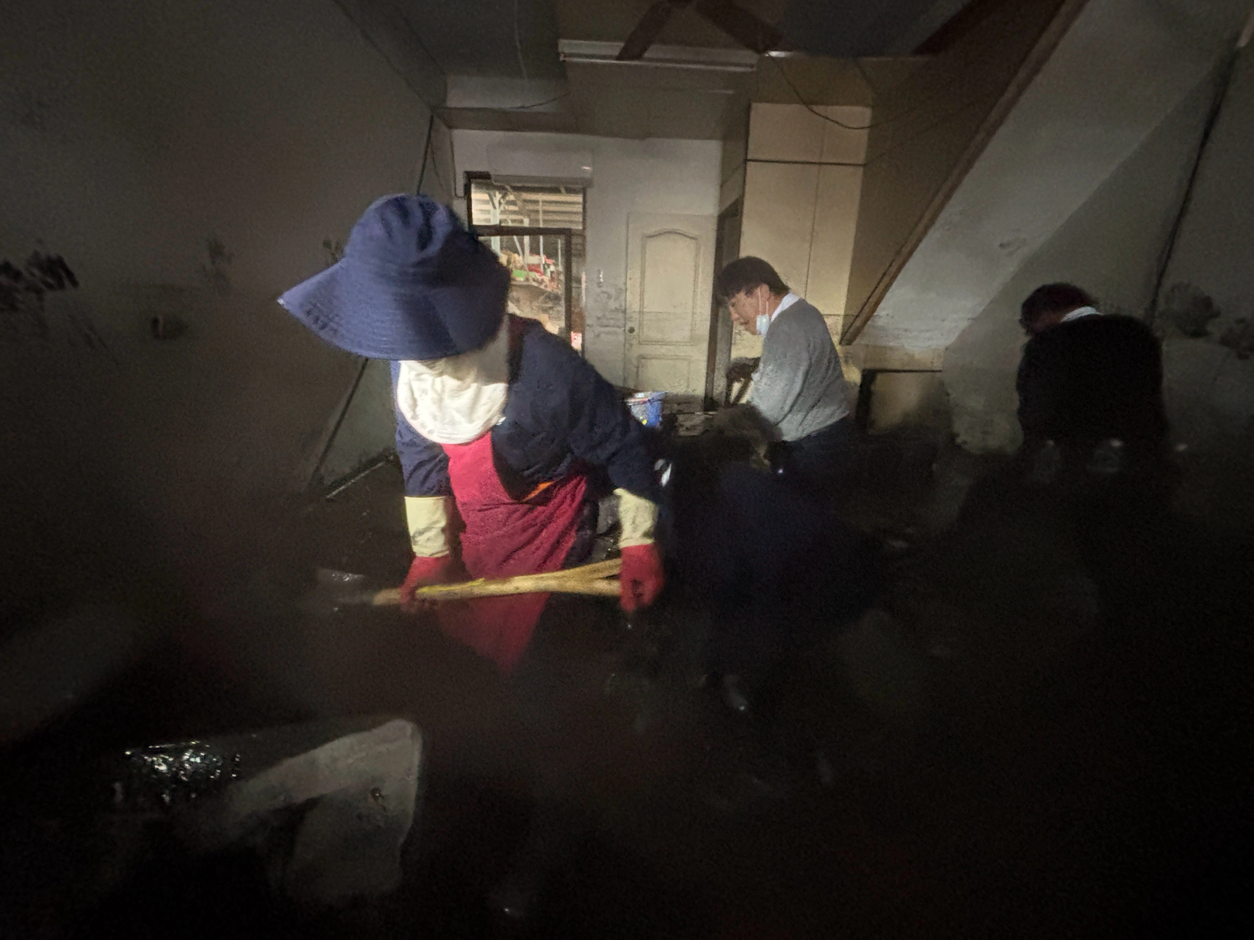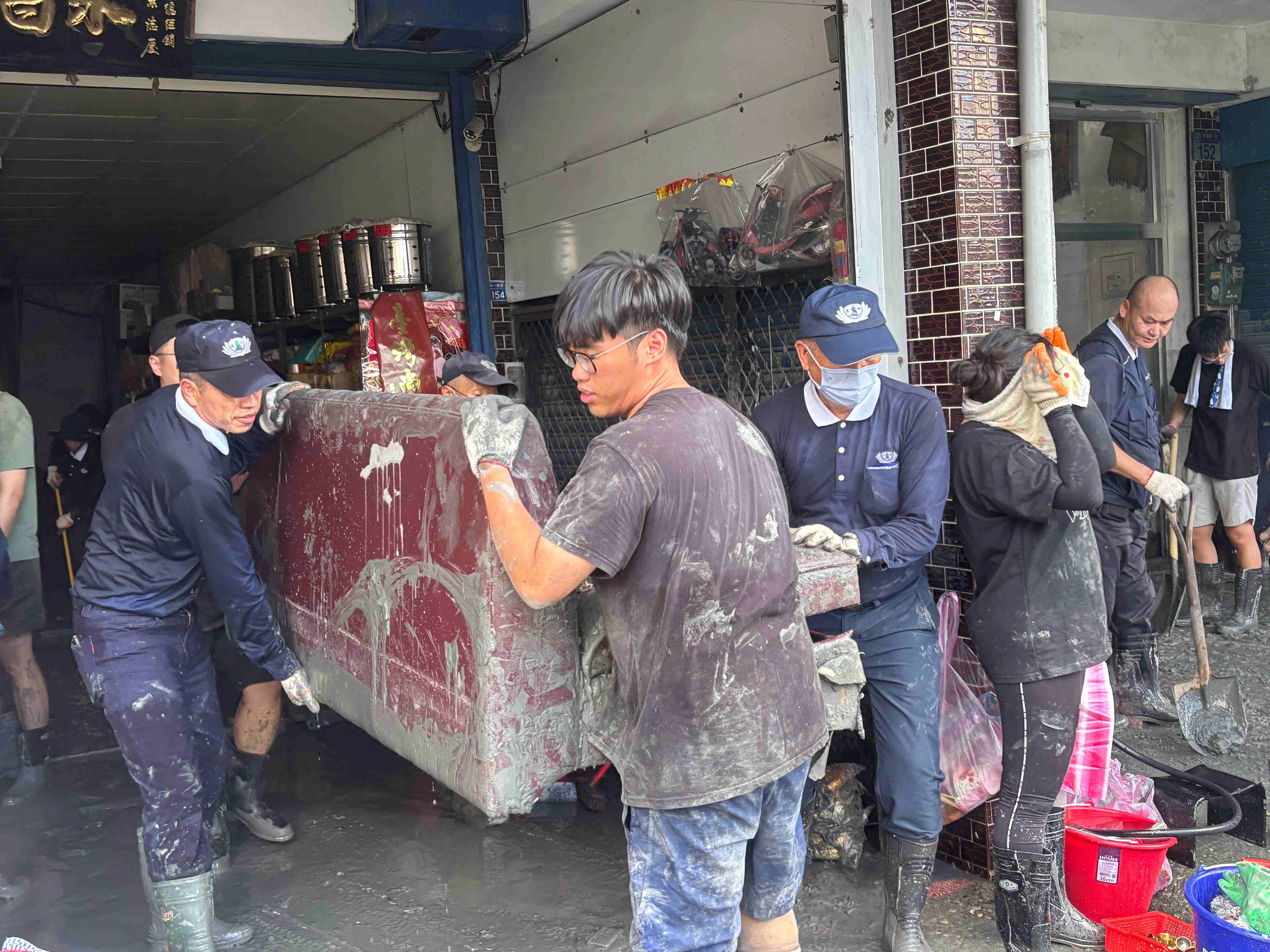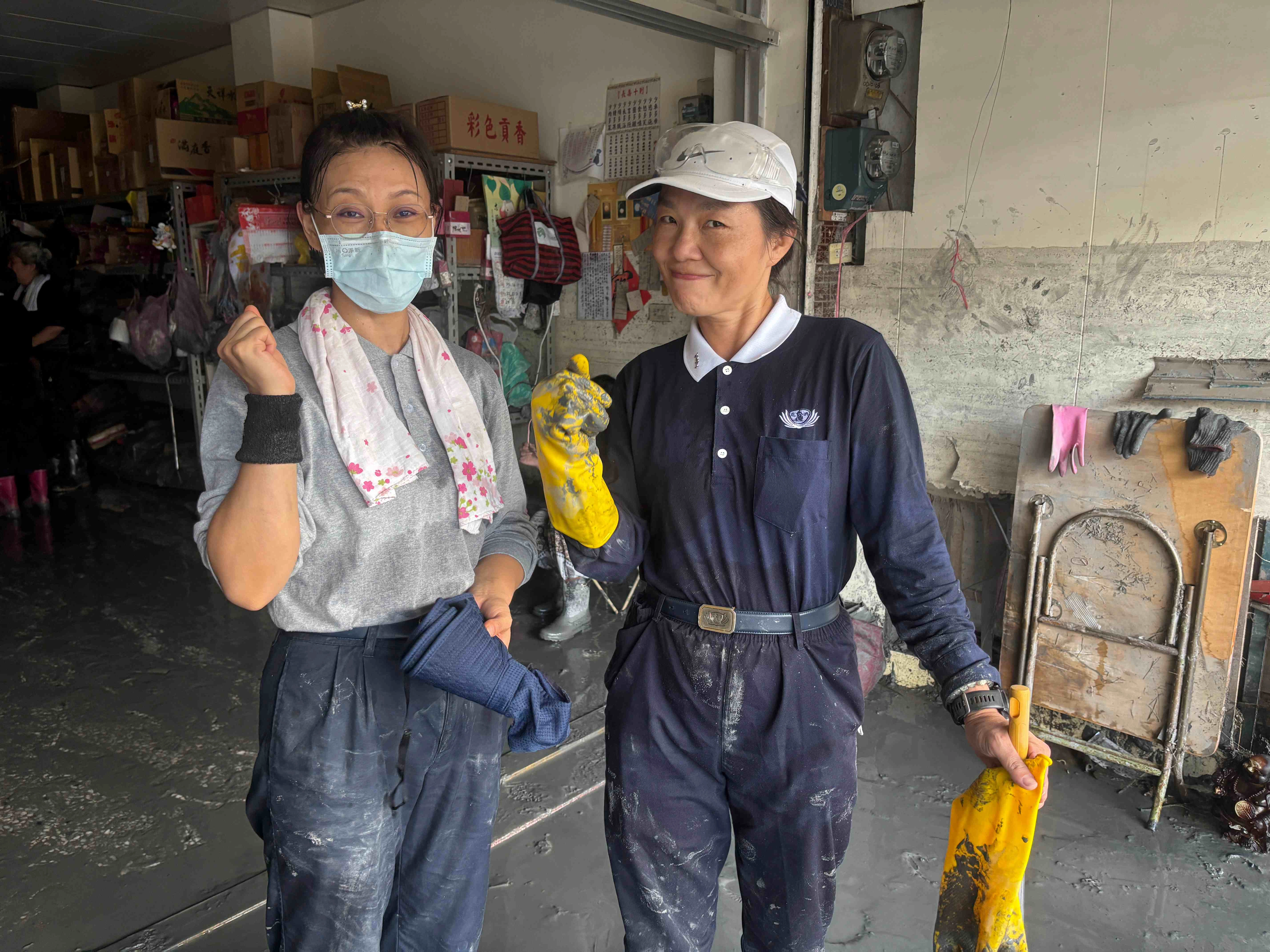 「不只這兩間,過去不遠的街道還有一間倉庫,約一百四十幾坪,一樣全泡在二十幾公分、三十公分深的泥土中,損失三、四百萬。」幾天來看到志工湧入協助打掃,他欣慰地笑說:「很感謝你們,和全國各地的志工來幫忙,財產雖有損失,還好家人都平安。」