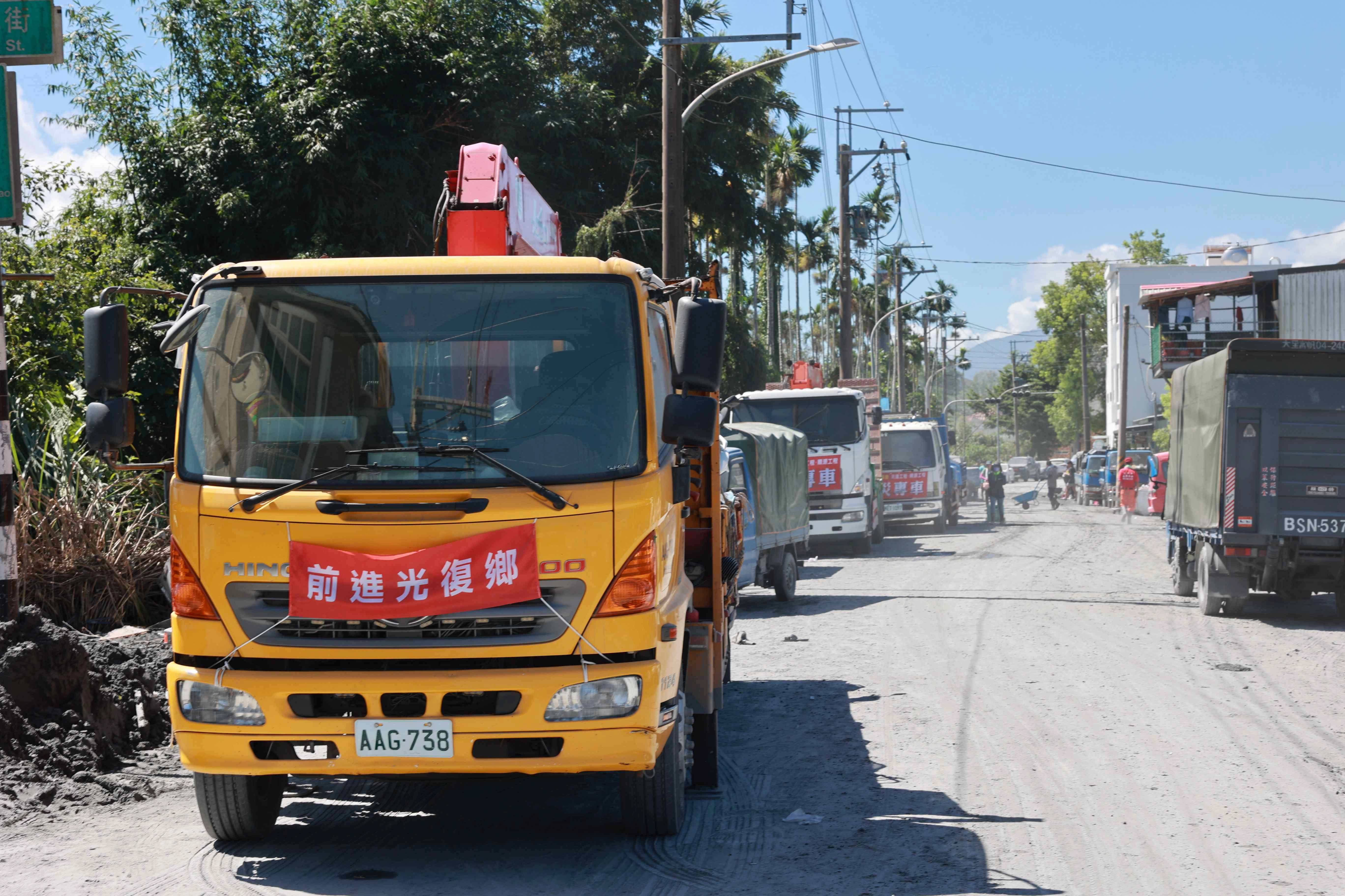 政府救災車也湧入光復,期盼光復早日恢復原貌,讓鄉親過安穩日子。(攝影/章承儀)