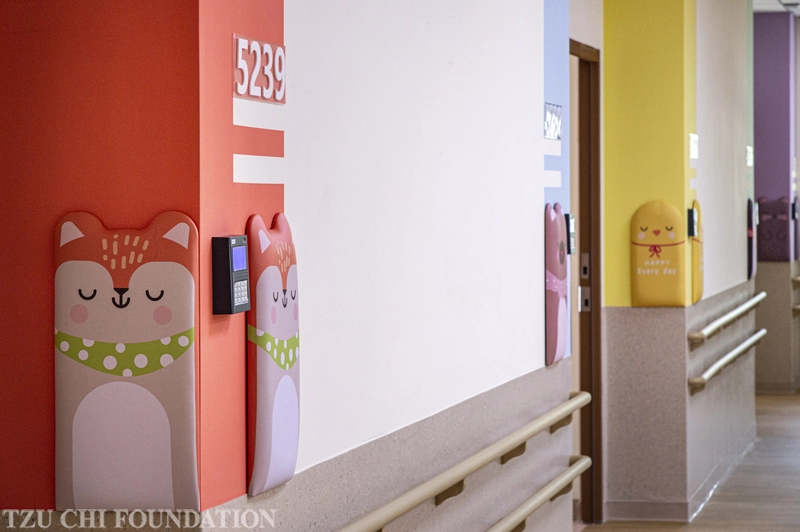 「仁愛長照機構」致力營造「悅性空間」,住房門口以不同顏色的可愛動物標示,利於失智長者辨識記憶。(攝影/黃筱哲)