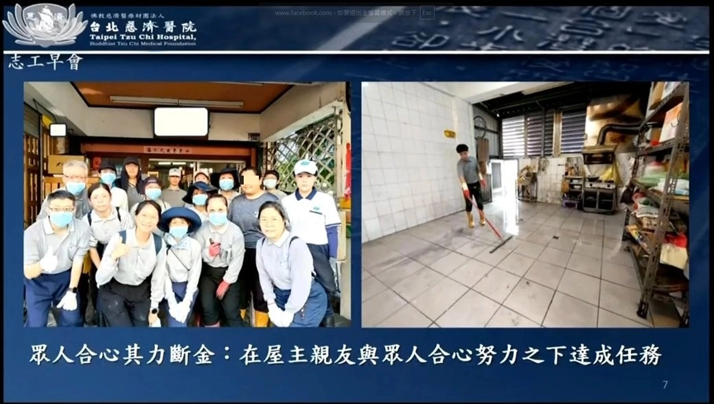 在大家齊心協力下,終於把案家的廚房清理乾淨,任務完成的那一刻,既開心又充滿成就感。(圖片來源:擷取自常佑康簡報)