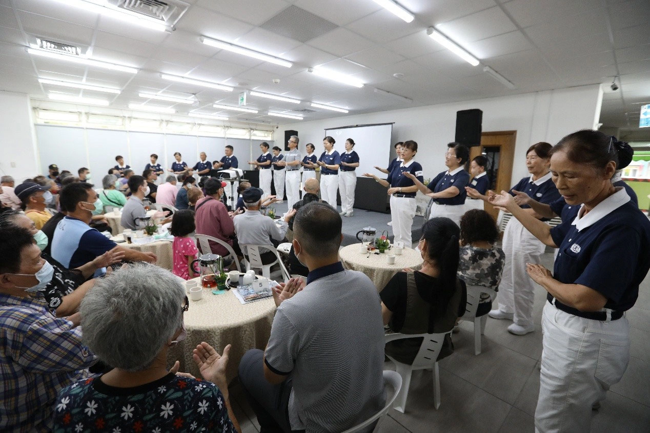 玉里慈濟志工帶來《人間有愛》手語表演,歌詞映照著鄉親們的感受,他們隨著志工比著手語,現場人人都能感受到這股清淨滿溢的愛。接著,還有江國誠護理長及慈院災後安心團隊與鄉親進行Q&A互動。