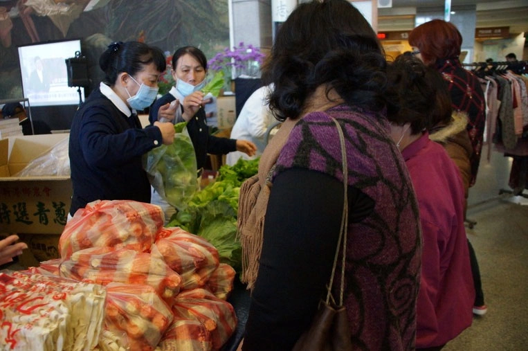 嘉義大林慈濟醫院舉辦「延物命、聚愛心,讓愛起菲」募心義賣活動,民眾選購新鮮蔬果,為菲律賓海燕颱風賑災募款募心。(2013/11/29;攝影:謝明芳)