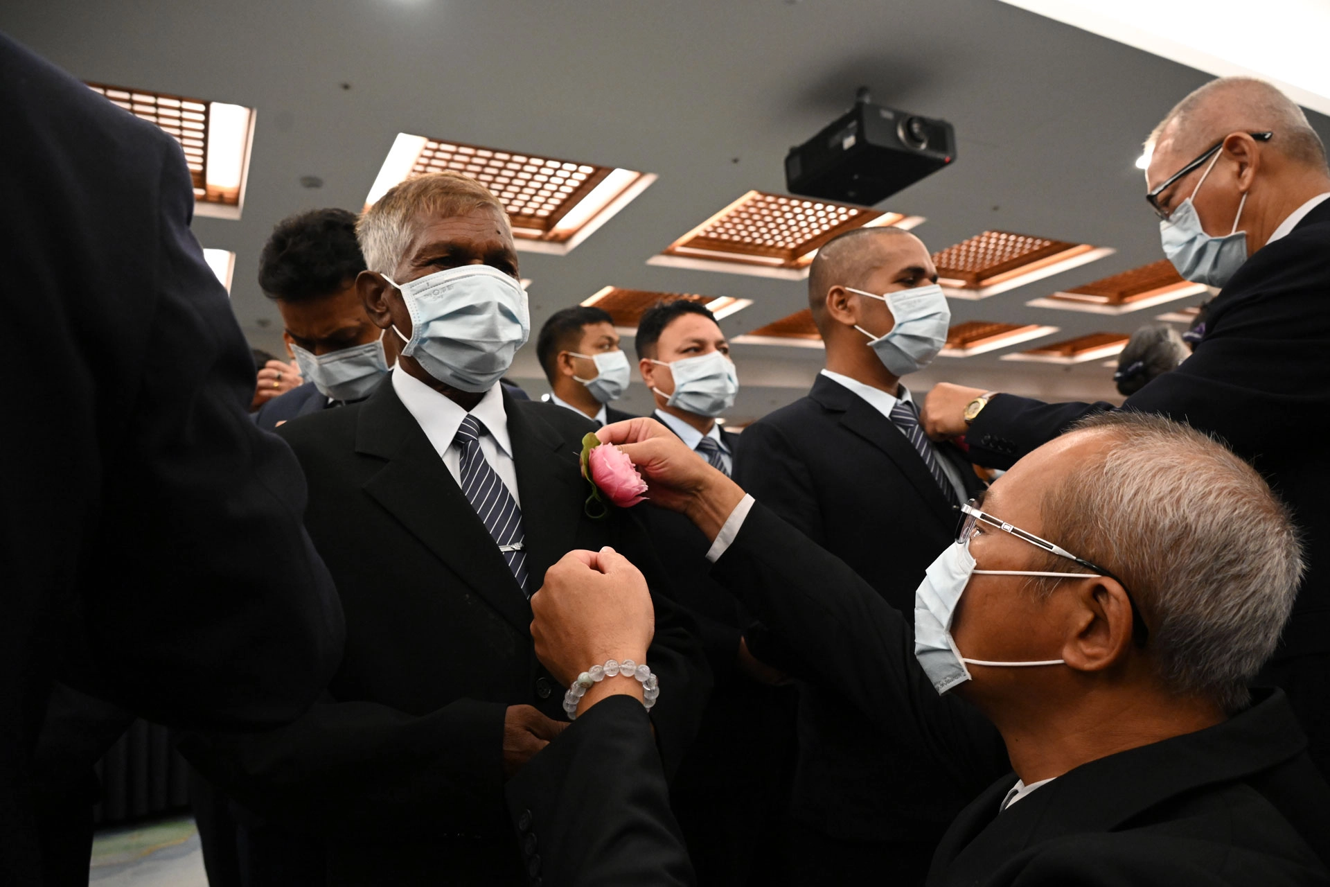 11月10日這天,甘滿季終於等到要讓上人授證了。當隊輔幫他別上「佛心師志」時、當負責印度會務的蘇祈逢幫他整理慈誠領帶時,他又再度感動到哭了,「我做夢都想不到我能夠來到臺灣,從一個乞討的人成為一個可以手心向下的人,我真的很感動,也充滿感謝。」
