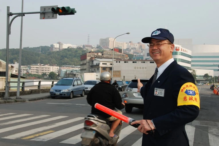 北區合心委員慈誠培訓課程中,葉國榮師兄負責交通組,維持現場秩序。(2008/03/16;攝影:黃曾幼馨)
