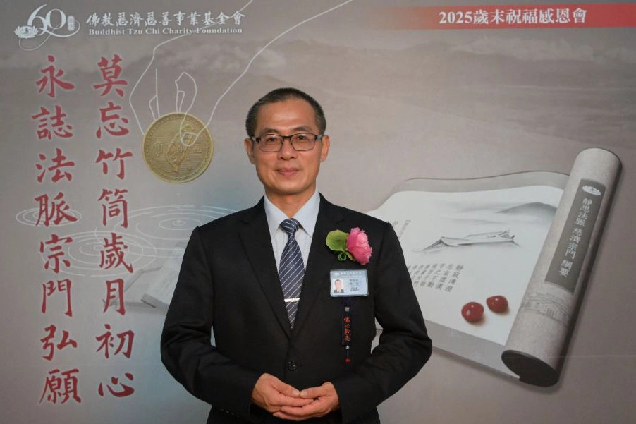 劉智銘與慈濟的因緣,始於生命裡最深的痛——2024年4月父親離世。2025年11月22日歲末祝福活動圓滿,他正式受證為慈誠。(攝影:曹健輝)