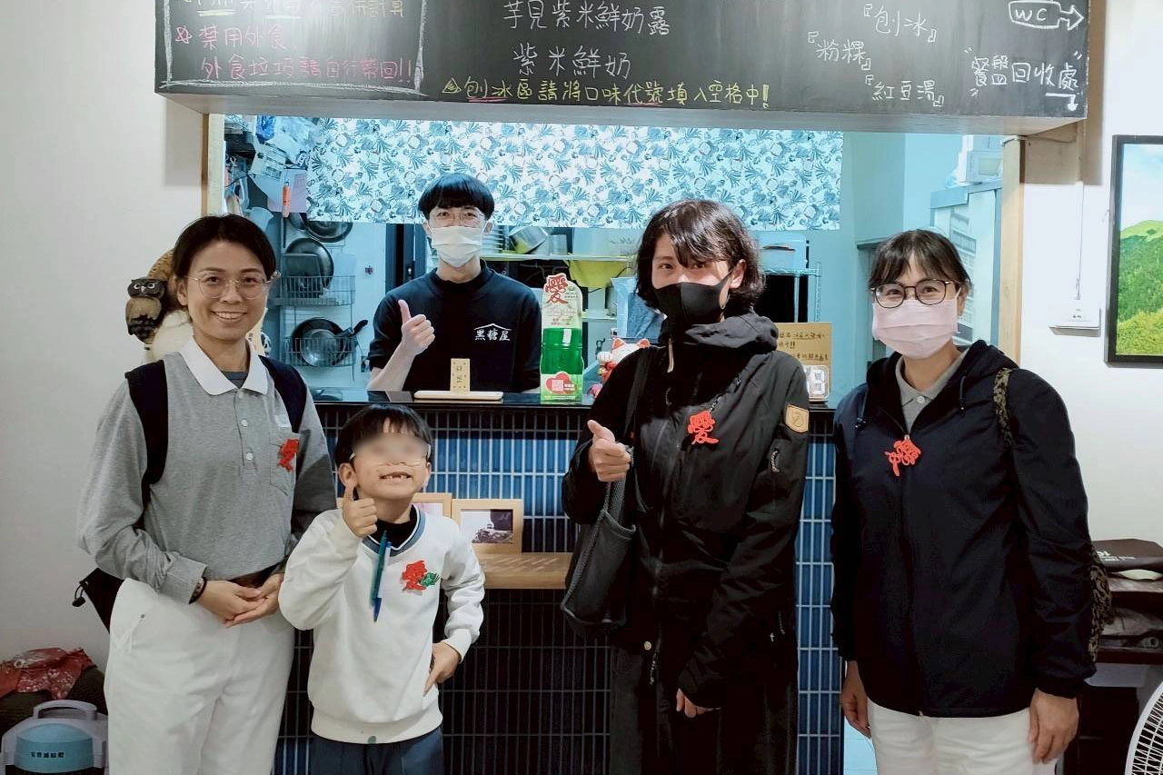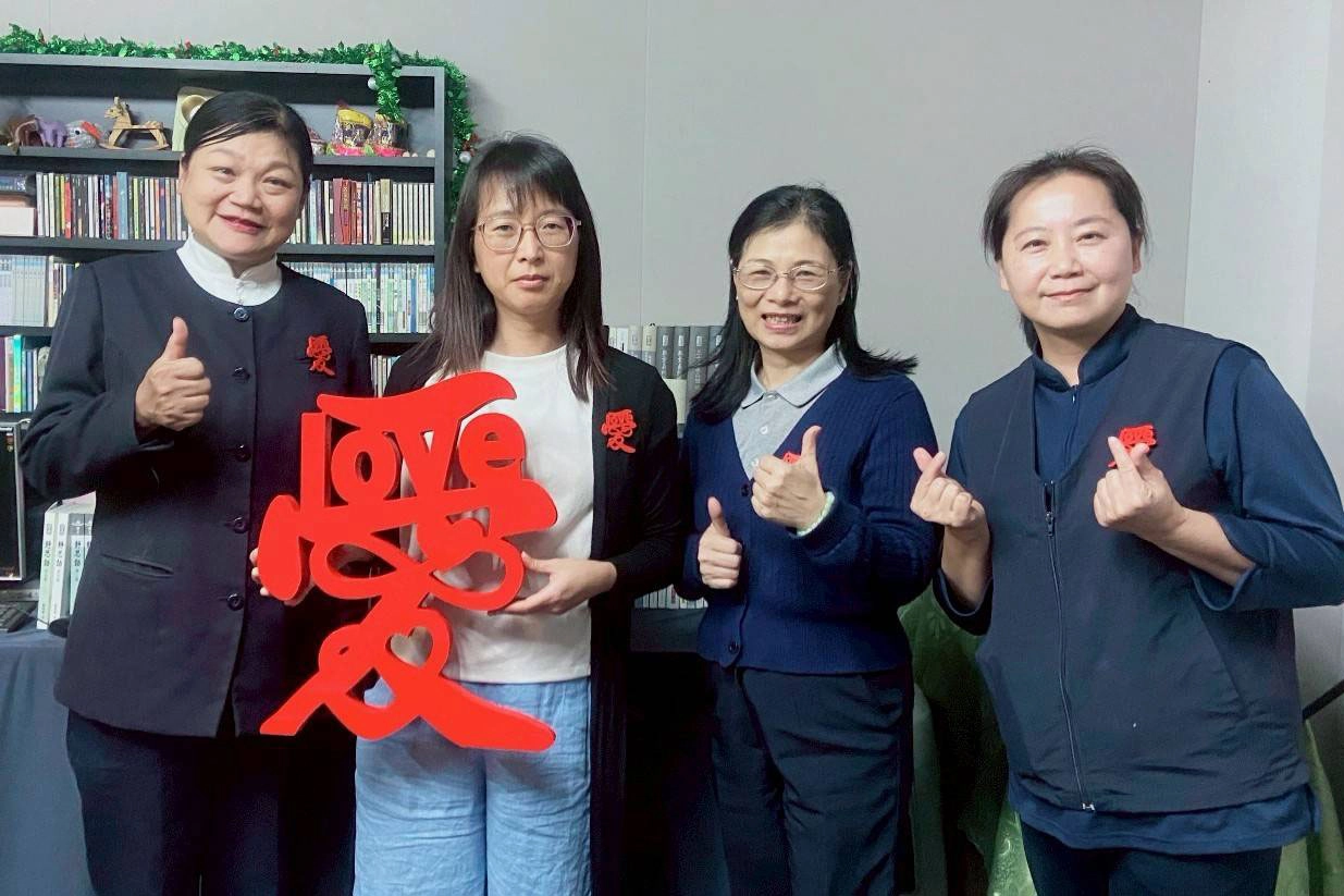 琇媜(左二)深受證嚴法師「五毛錢也可以救人」的理念感動。小小的五毛錢也能發揮無限力量,而許多顧客也會自發投入愛心,讓店內洋溢著溫暖的人情味。(圖片來源:黃秀眞提供)