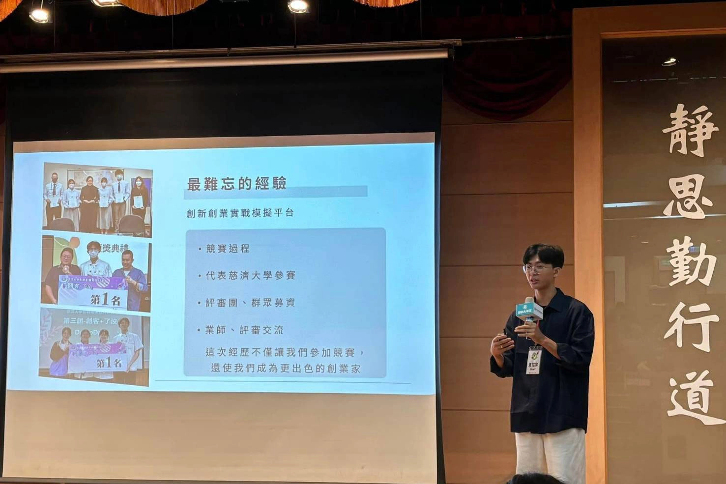 琇媜的兒子從宇,在「創創大學堂」分享創新創業的心得。(圖片來源:黃秀眞提供)