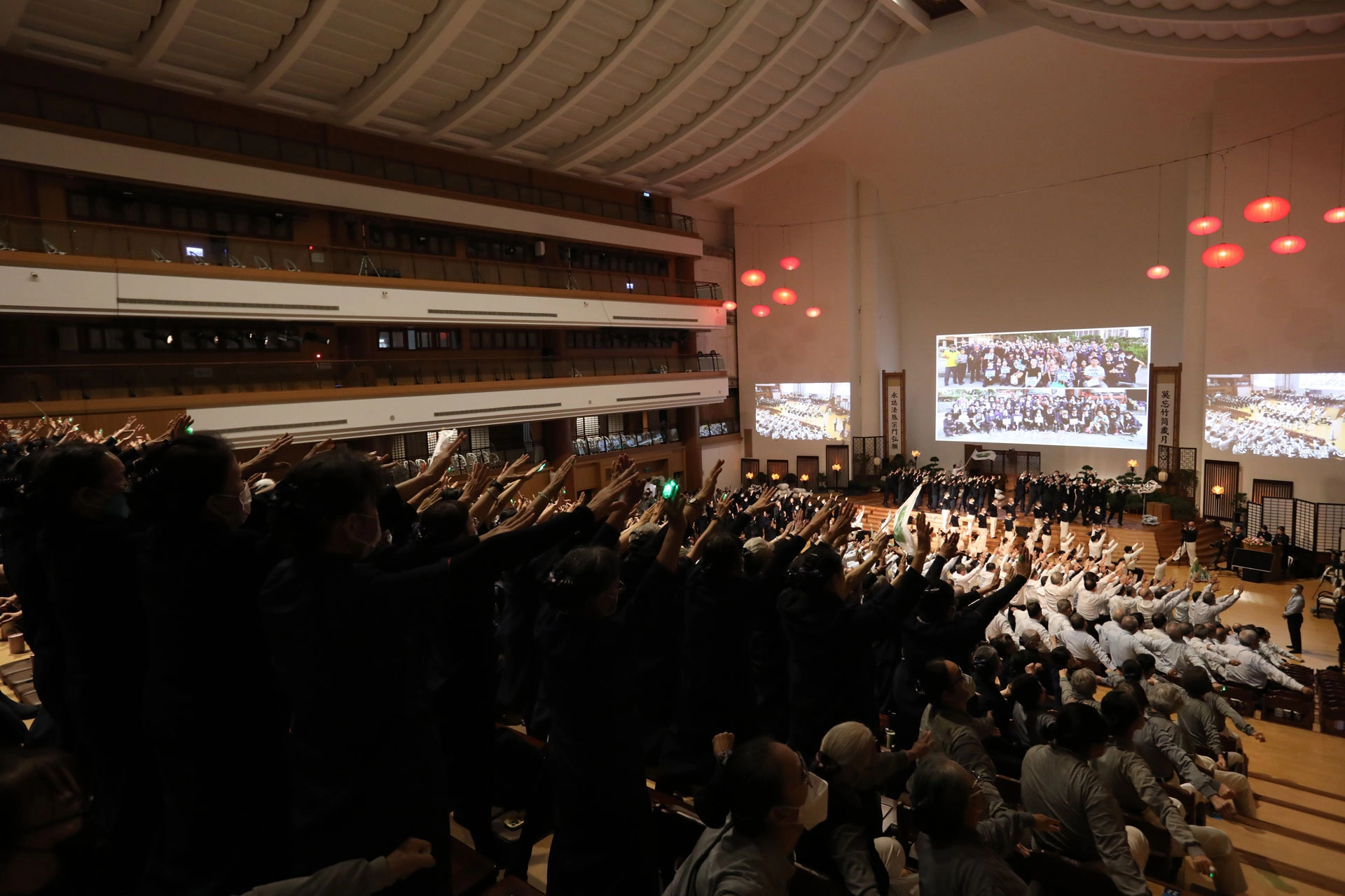 上人期許,靜思弟子不僅要走入人群,更要深入佛法。2025年歲末祝福除了梵唄,還加入戲劇元素,呈現海內外歷年重大災難。(攝影:江寶清)