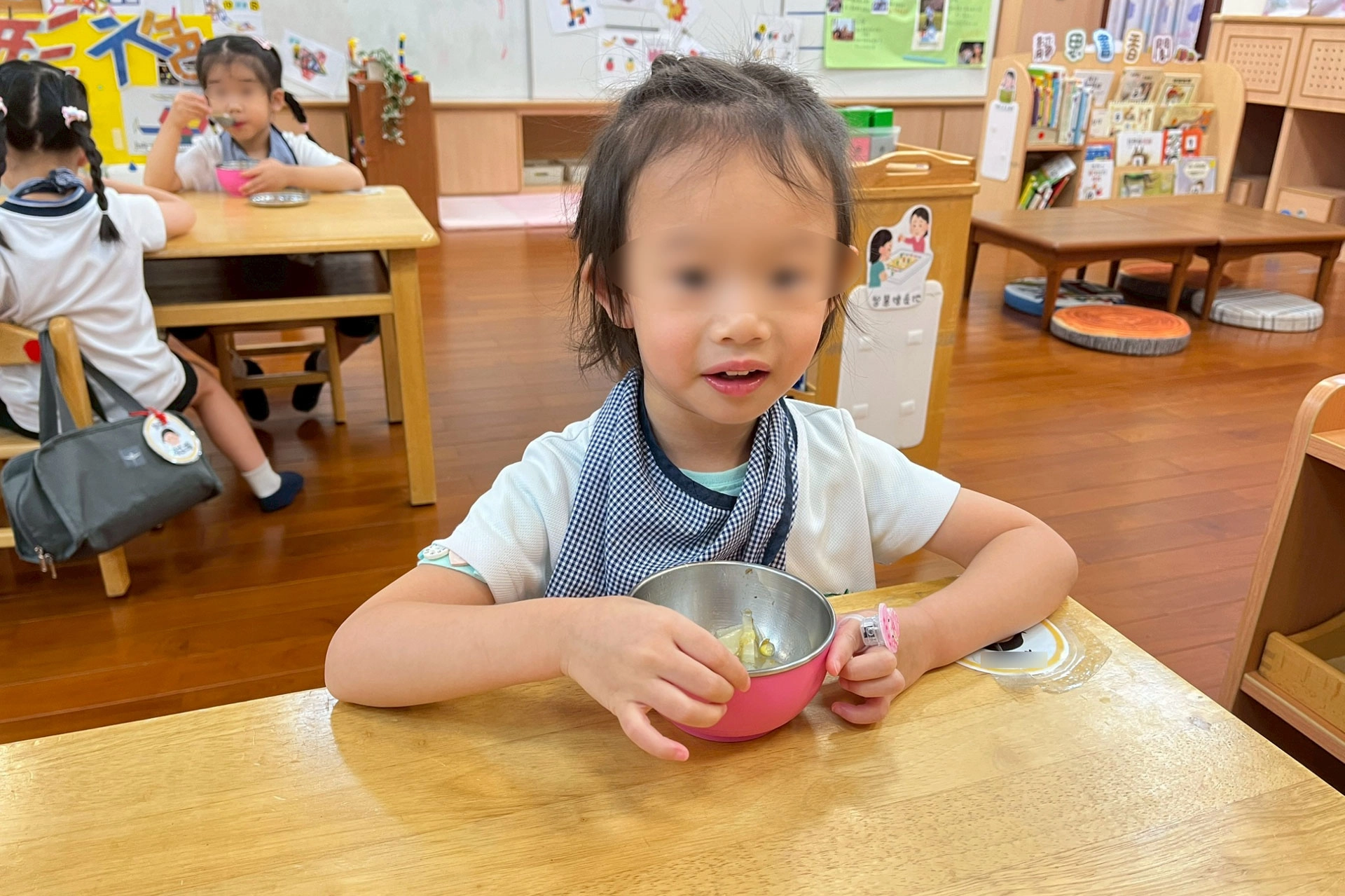 大愛幼兒園擁有一片寬闊草地,孩子們得以在陽光下自在奔跑、玩耍,盡情感受大自然的氣息。園方亦規劃農耕課程,引導孩子認識各類植物與蔬果,並親手栽種、細心照料。透過這些學習與體驗,盛柔不僅了解自然的變化與植物的生長歷程,也逐漸培養出珍惜食物、感恩自然的心。