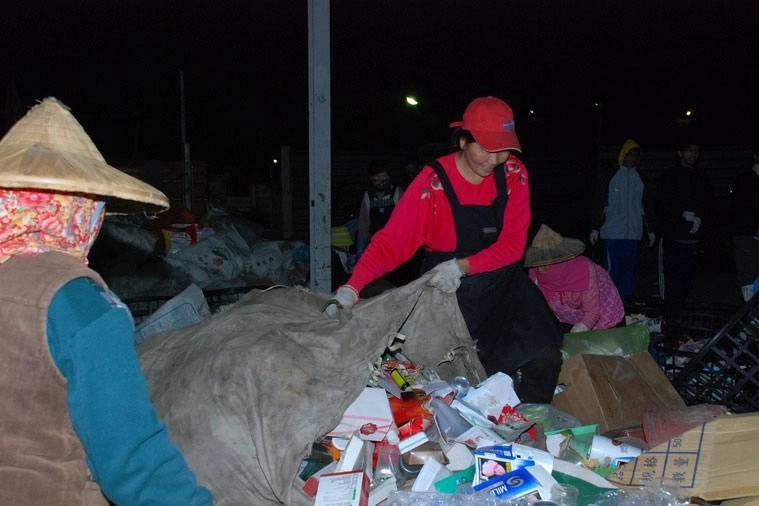 蔡淑娟深受環保志工蘇秀香的付出所感動,透過捕捉她面帶笑容、手腳俐落,並視環保站如家的細節,展現「口動、手動、腳動都不累」的恆持精神。(攝影:林柔媫)