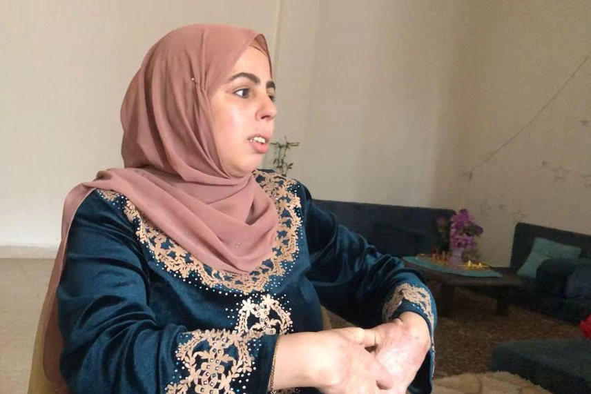搬到安曼後的芮娜,隨著身體漸漸康復,她也拿下面紗,安心自在與志工交談。(攝影:林綠卿)