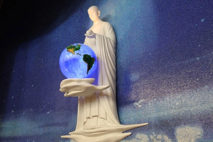 2009年10月27日,我們改良的第一尊宇宙大覺者在臺中清水靜思堂安座,高三米半、重三百五十公斤,使用0.3mm銅板打模,地球採PET材質,繞行一圈需二分四十秒。第二尊於2010年10月安裝於高雄靜思堂,採FRP材質複製;第三尊則於2012年12月19日安裝於臺中靜思堂。