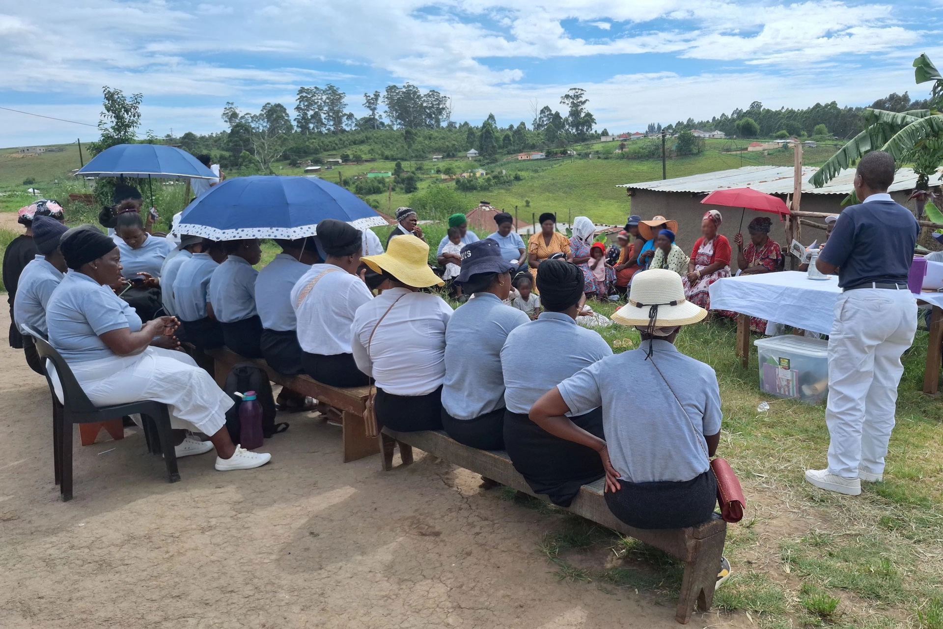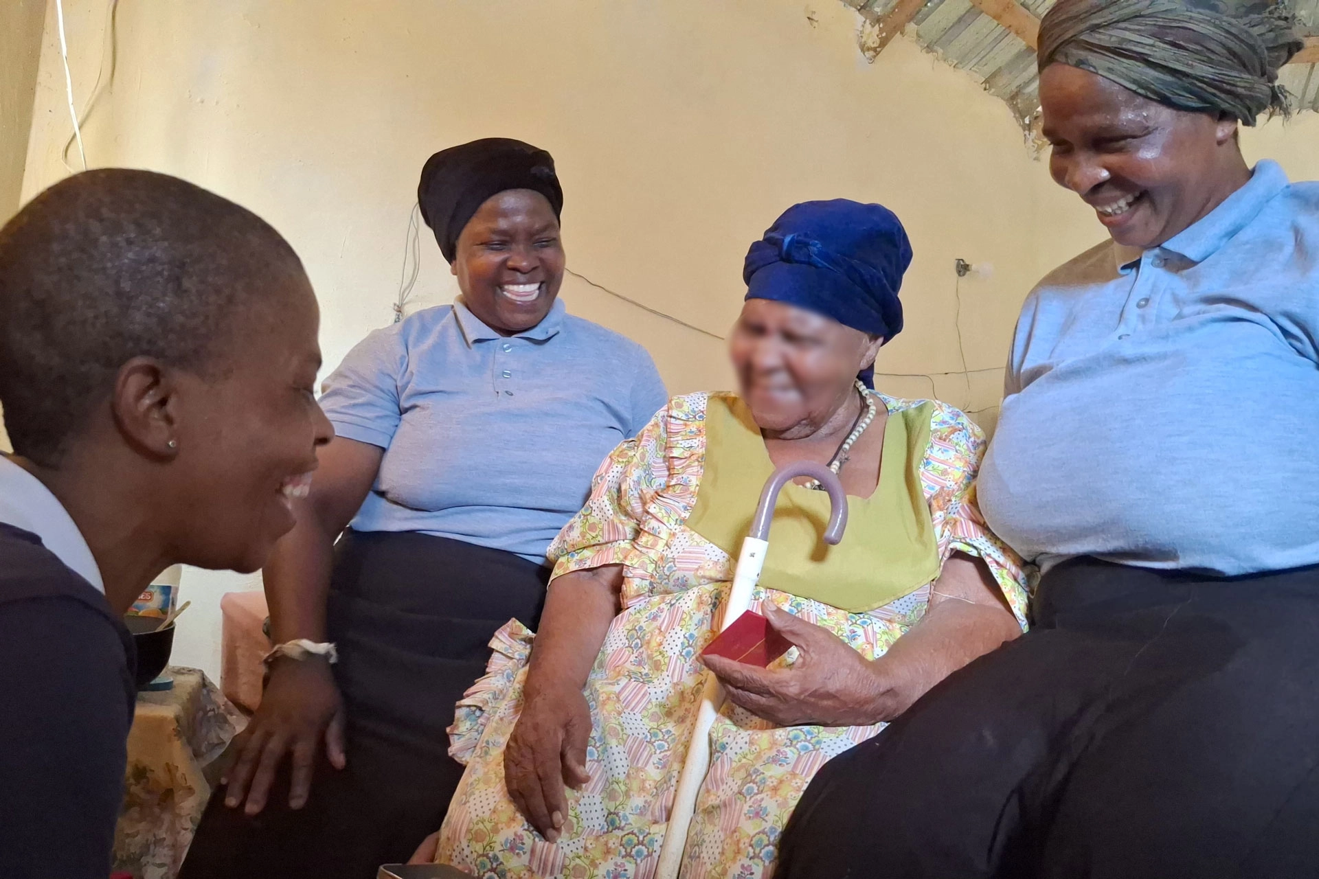 志工們也走入社區進行家訪。44歲的 Andile Sthole 長年獨居,因中風導致左半身癱瘓,院子裡雜草叢生。志工們到訪後立即動手清理環境,當院子變得乾淨整齊時,Sthole先生不斷向志工道謝,而志工們也承諾會持續回來關懷。