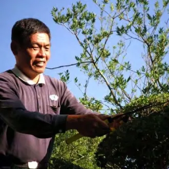 【那年,我們一起蓋主堂】花木傳情修好緣-園藝志工林春波師兄撰文/胡青青整理/靜思園地編輯組 遠處的山嵐輕輕籠罩翠綠的山頭,似霧氣飄渺的細雨濛濛地下著,精舍寮房旁成排的灌木叢中,傳來一聲聲「卡、卡......」的聲響;頭戴斗笠一身藍衣的林春波,雙手拿著兩尺長的大剪子,依著...