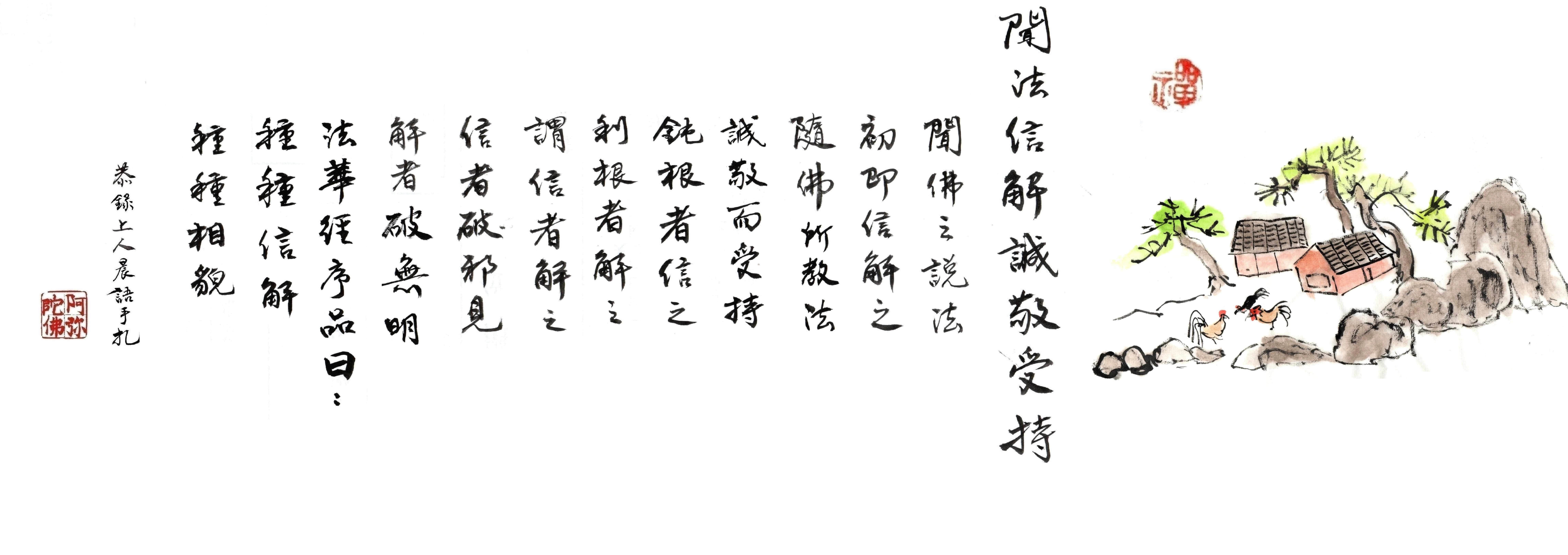我們一定要誠、敬,「敬佛如佛在」。「隨佛所教法」,隨佛所教,我們要恭敬,「鈍根者信之」,鈍根的人,只要他有心,他也能夠信。他信的法就是,「我要改變習氣,我要好好地聽話,你如何教,我就照你說的走。」