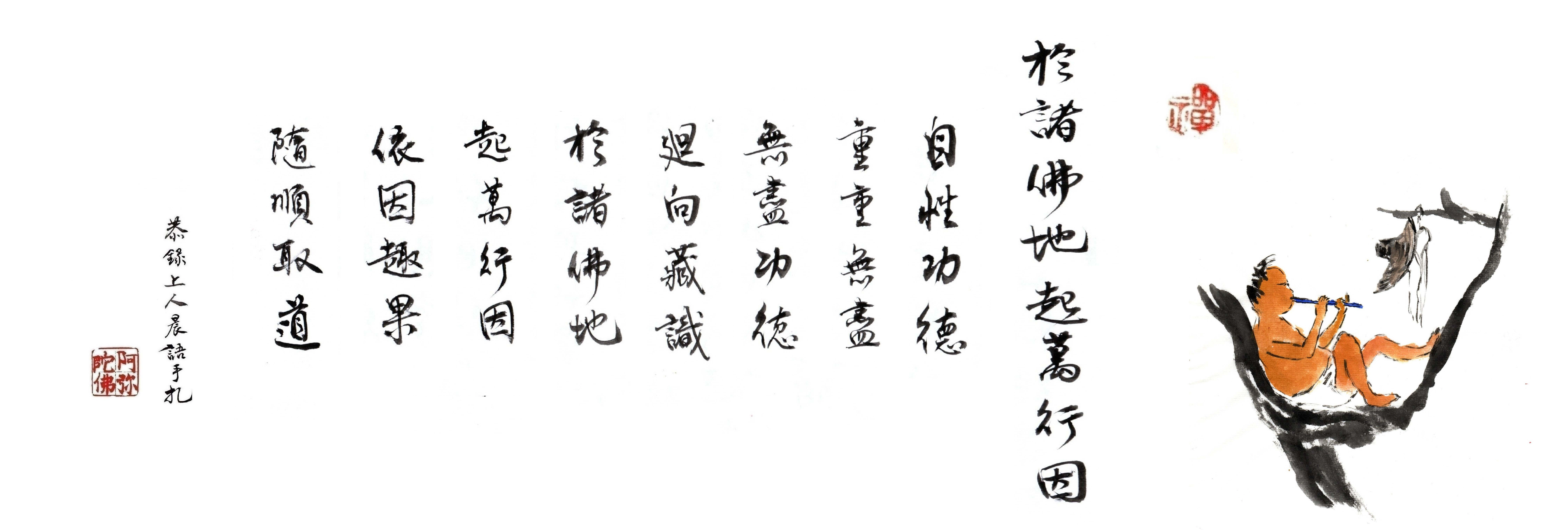 「自性功德,重重無盡,無盡功德,迴向藏識」,要用心了解自性。我們修行,目的就是要回歸本性。佛陀告訴我們,人人本具佛性,所以教導我們修行要行菩薩道,這麼簡單的循環。