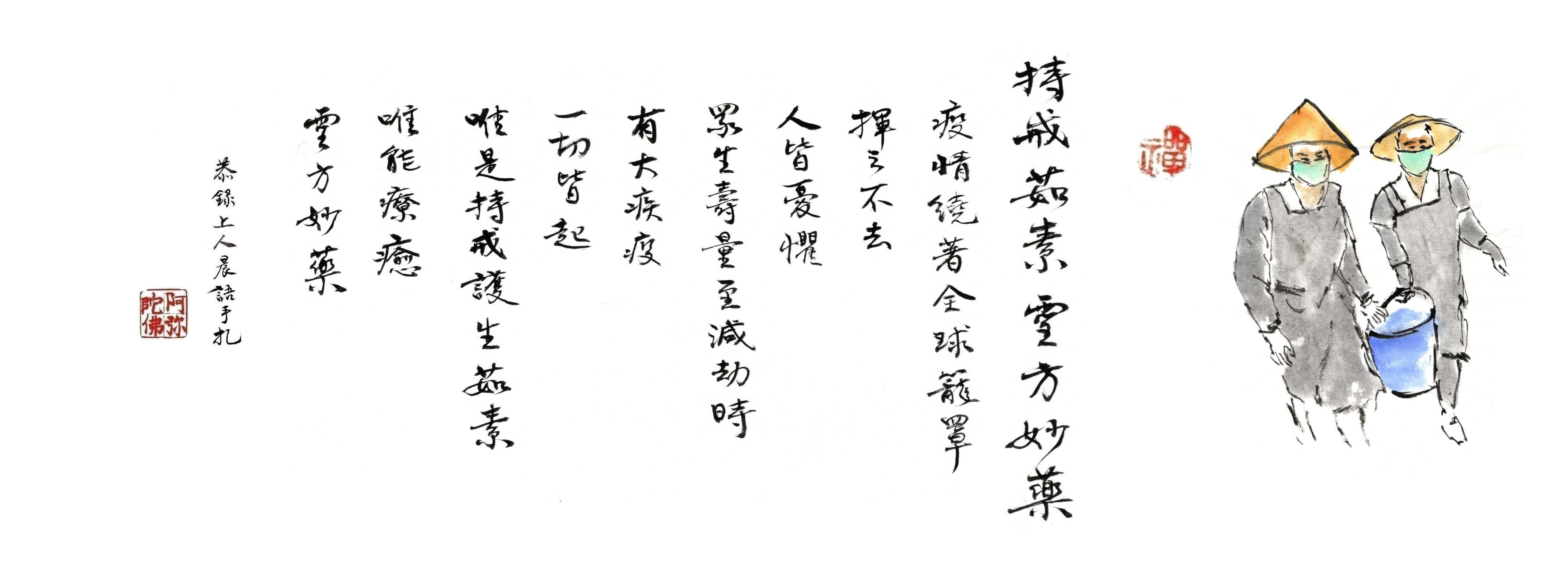 我們需要用心,將心門打開,也要知道世間一切法。不可以說我在修行,就不理睬世間事。了解世間現在發生什麼事情,開出佛法這帖靈方妙藥,人才能服用。所以現在這一波疫情,非人可擋,唯有齋戒、茹素的靈方妙藥。在日常生活中,大家要好好去宣導,不可漏掉這分完整的愛。
