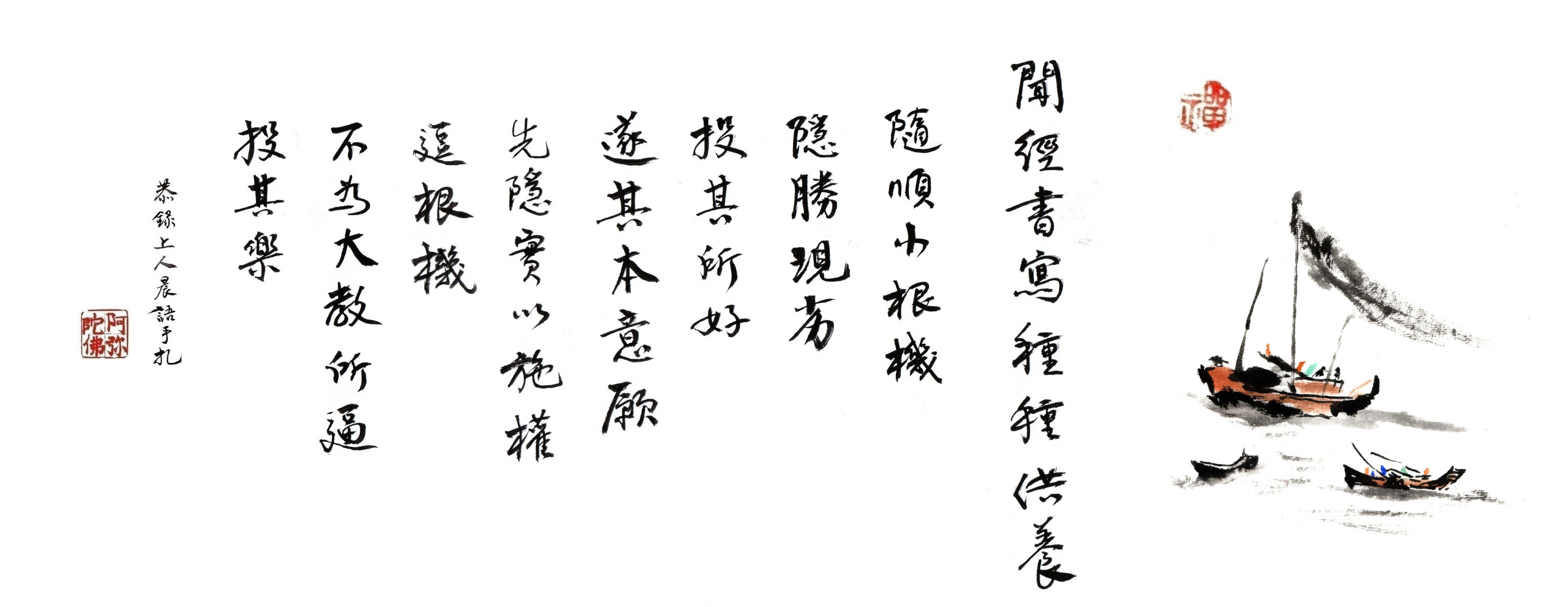 大根機,發心利己兼利人,精進受持佛法,並沒有離開人群度眾生,這是利己利人。時間參半,用一些時間修自己,也向前前進,關懷人間苦難。雖然他是初學,悲心卻很殷重。其實他已經知道法,也是有利他的願,但是力量還沒展開,還在小根機的行列之中「隨順小根機」。