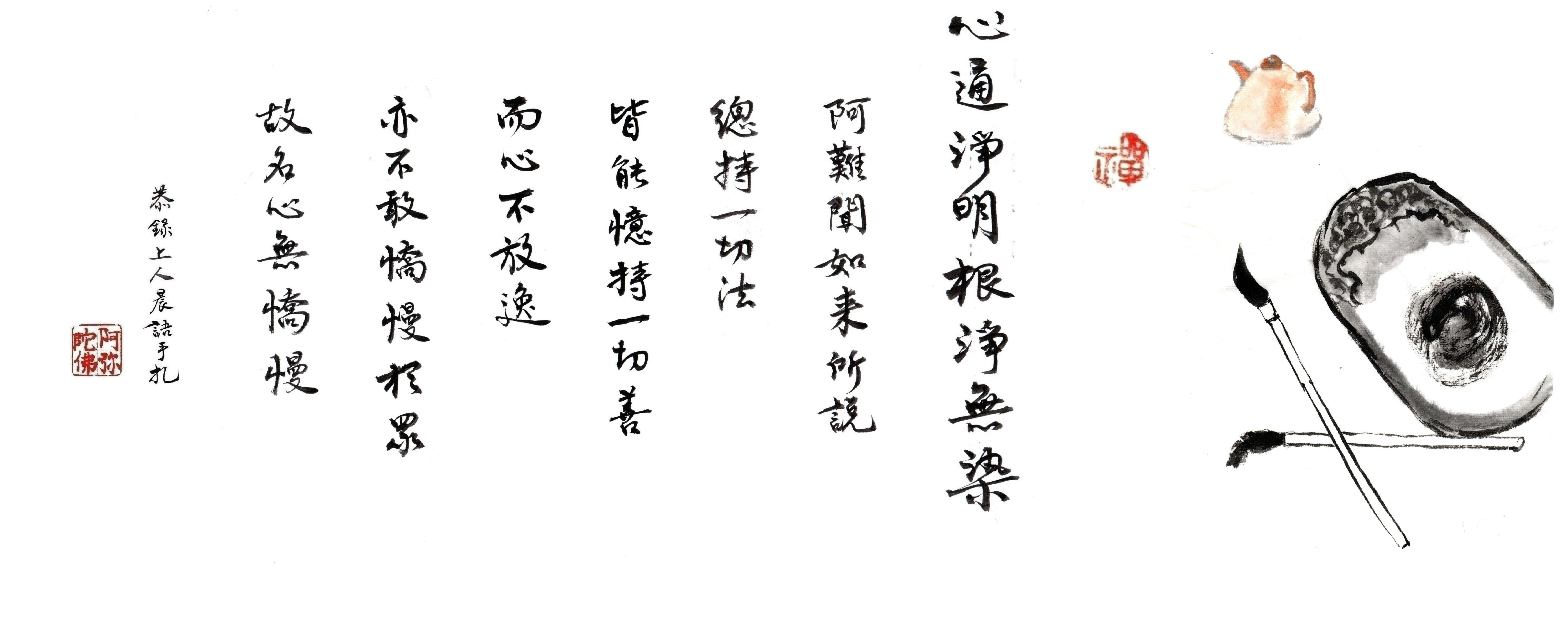 總一切法,持一切善,都可以在《法華經》中取得。經、法中有很多方法,能讓我們得到智慧、力量、信心。所以,「皆能憶持一切善,而心不放逸」,將心憶持善法上,不令忘失。持經的人,儘管經與法很清楚,但是要時時警惕,「亦不敢憍慢於眾」。