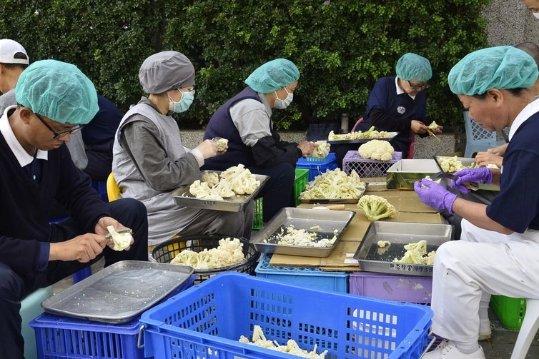 從白花椰菜過剩,到志工削薄片的辛勤,再到惜福花椰菜梗的料理,這段過程串起了許多珍貴的因緣。
