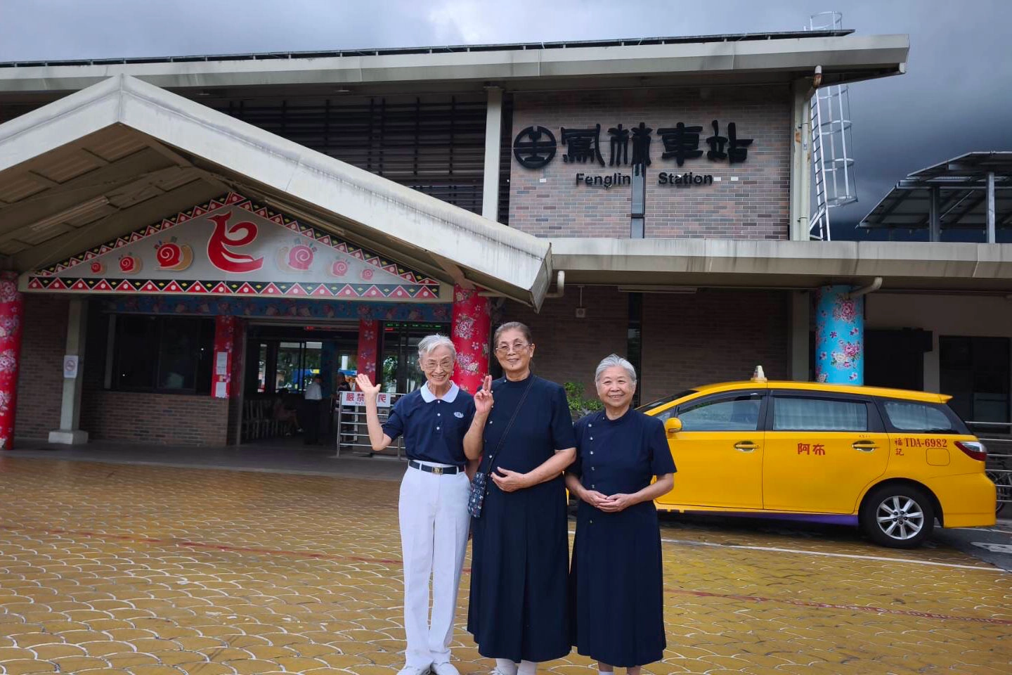 陳麗卿、方碧蓮、陳美羿(左起)和劉雲雀四人前往鳳林的南平中學,一同參加「靜思閱讀書軒」落成啟用典禮。(攝影:劉雲雀)