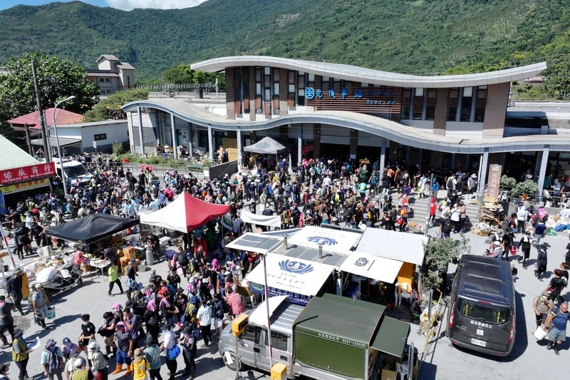 9月28日,光復火車站前投入救災的志工與民眾集結,依救災地點分配,準備前往打掃的地點。(攝影:王賢煌)