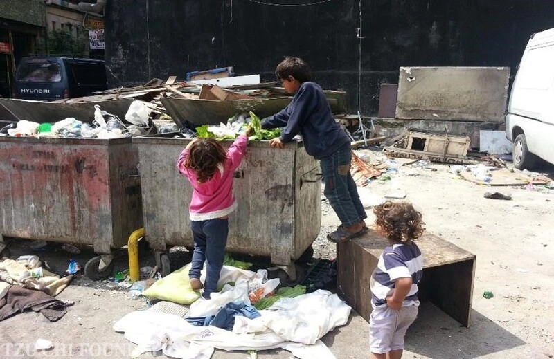 伊斯坦堡的街頭處處可見難民沿街乞討,飢餓的敘利亞孩童在垃圾桶裡翻找食物,溫飽都成問題更何況受教育。(2023/01/13拍攝者/沈瑞至提供者 胡光中提供)