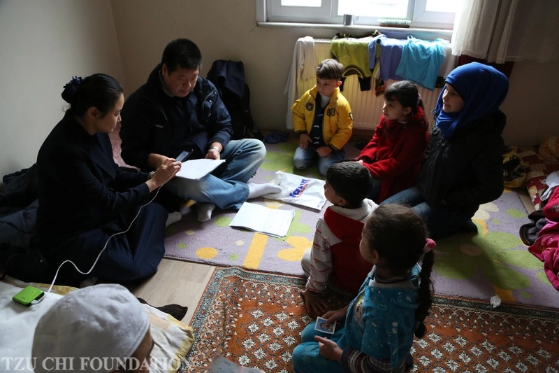 在土耳其的慈濟人胡光中、周如意夫婦,以及余自成師兄不忍這些難民孩子們因戰爭而失學,更捨不得在工廠裡當童工的孩子們,工作十三小時,一整天卻只有十三分鐘的休息時間。