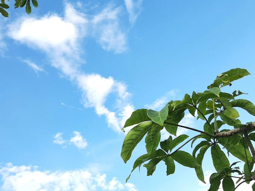 院子裡有一棵大芒果樹,是我躲藏心事的小天地。我喜歡爬到樹上,坐在粗壯的枝幹上,望著藍天,看著葉影搖曳。風吹來的果香,混合著陽光灑下的斑駁光影,彷彿整個世界都暫停了,只有我和樹,以及心裡的悄悄話。