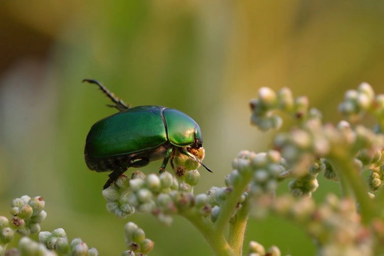 身披藍綠金屬光澤的金龜子,被綁上細線成了無需電池的玩具;孩童的歡笑聲中,如今回想,只剩一陣隱隱的痛。(攝影:陳玉萍)