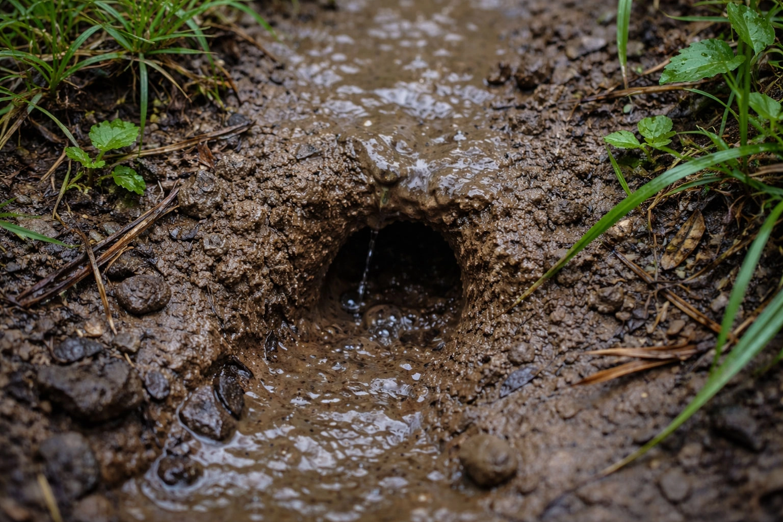 屋前、屋後的小土丘,是鄉下孩子的寶藏。撥開土丘,看到小洞,提著一桶水灌下,就能抓到蟋蟀。(圖片來源:AI生圖)