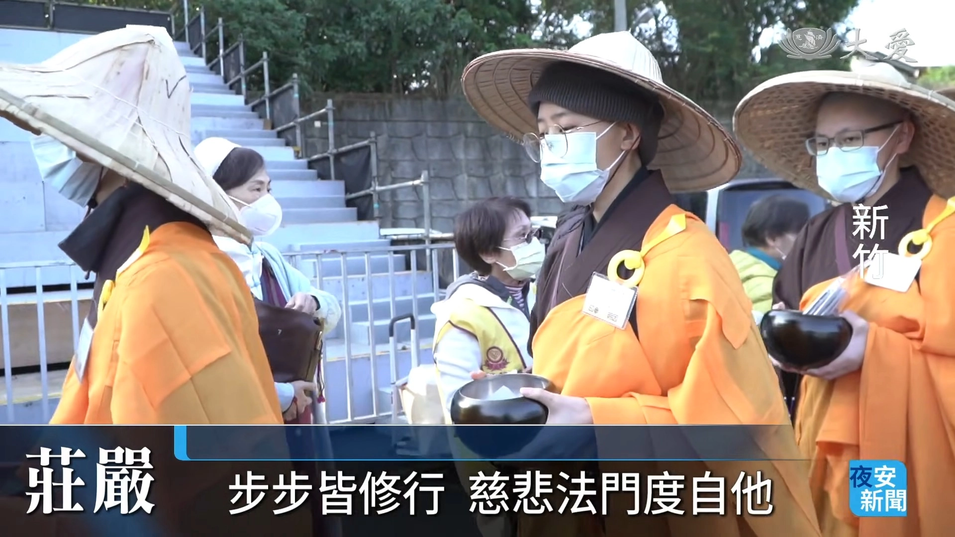 新戒子托缽行化這天,現場會眾把握難得因緣,向戒子行虔誠供養。(圖片來源:大愛新聞擷取畫面)