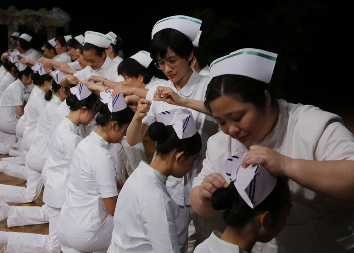 護理系加冠典禮,象徵承擔一分責任,也代表一段成長的開始。(攝影:許榮輝)