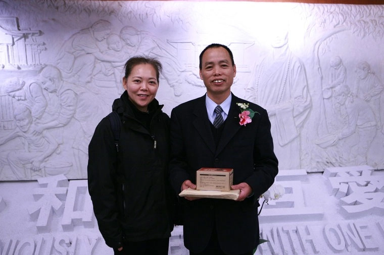 花蓮歲末祝福暨授證典禮,林宜龍師兄授證榮董,與同修張阿英師姊合影。(2011/01/22;攝影:許榮輝)