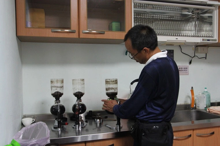 宜龍師兄平時說話大剌剌,實則心思細膩,是隨師團隊中可靠的總務,也是公認的泡咖啡高手。(攝影:魏瑋廷)