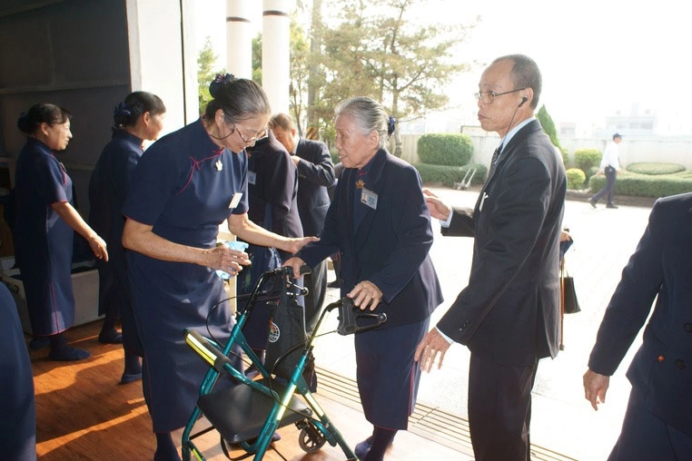 張阿英師姊見狀,以為宜龍師兄做錯了什麼,正向上人懺悔,便立刻走上前。後來才知道,原來是上人的召喚與肯定,阿英師姊鬆口氣,說:「宜龍很幸運得到上人的肯定,我也跟著開心隨喜。」