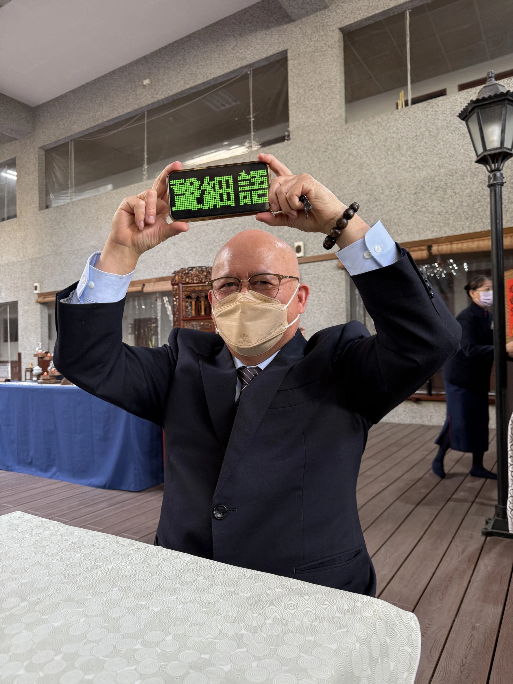 台南靜思堂四樓的休息區裡,一位年輕的師姊手上拿著一面寫著「請輕聲細語」的牌子,在人群中走動。牌子的大小約莫兩張 A4 紙,並不算小,但對於正專心聊天的人來說,不一定會注意到。於是,她只好走近談話聲量較大的師兄姊,把牌子送到對方面前,提醒他們留意音量。沈萬清師兄看著這一幕,點了點頭,低聲說了一句:「小心一點,謙卑一點。」