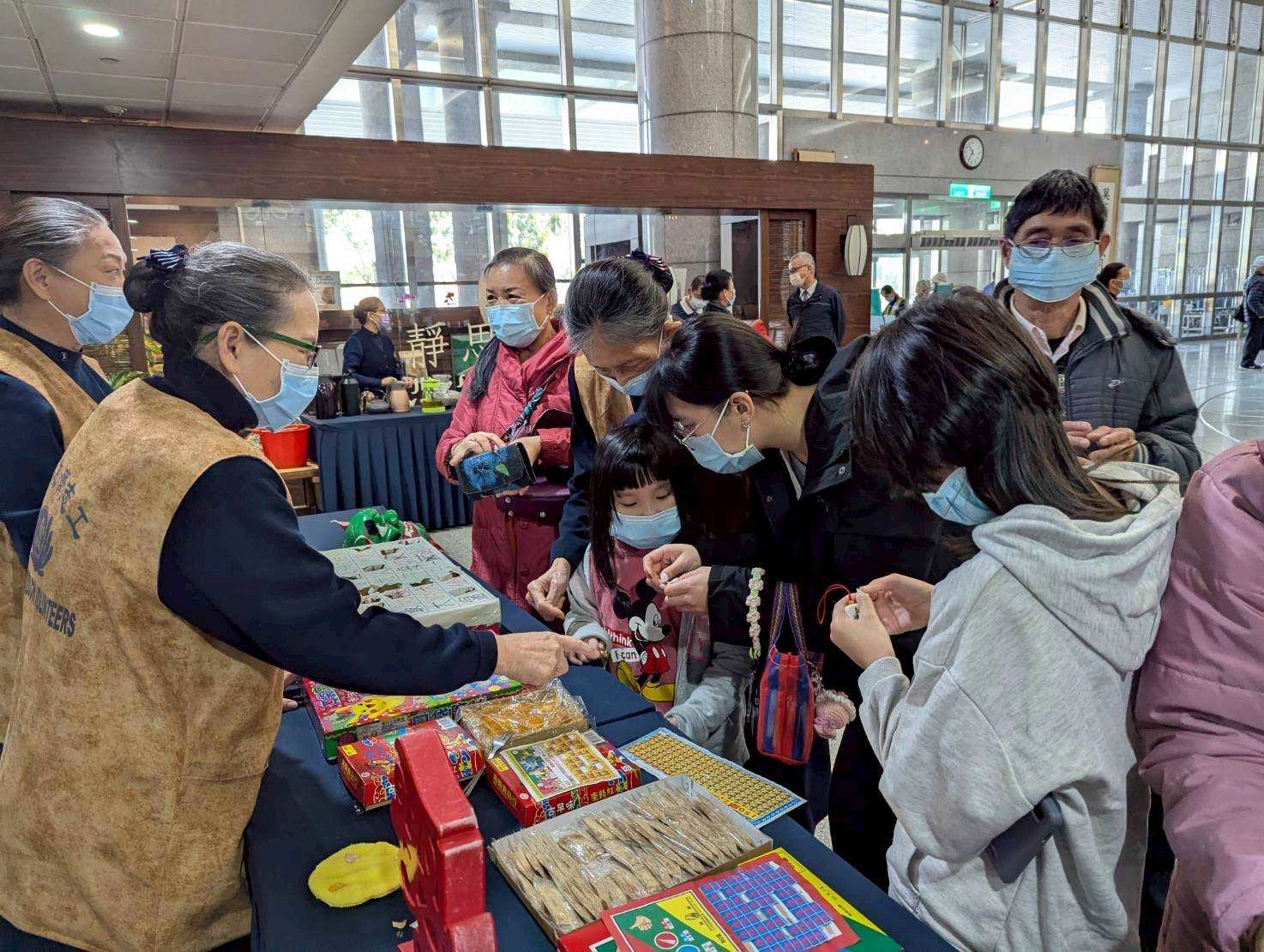 饒富童趣的攤位,總是吸引最多人駐足,也為醫院大廳增添了年節氣氛。