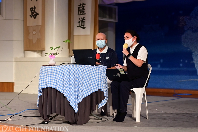 桃園四合一幹部精進研習營,分享中,朱金財師兄(左)染疫期間與太太的一段對話感人至深,學員陪著他落淚,他因呼吸困難對著太太說:「我走後,骨灰幫我灑在我曾經走過的土地上,我來生願做黑人,同文同種比較好度化。」(025/05/25攝影/張暢忻)