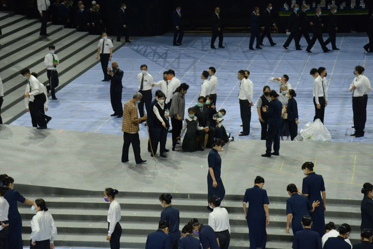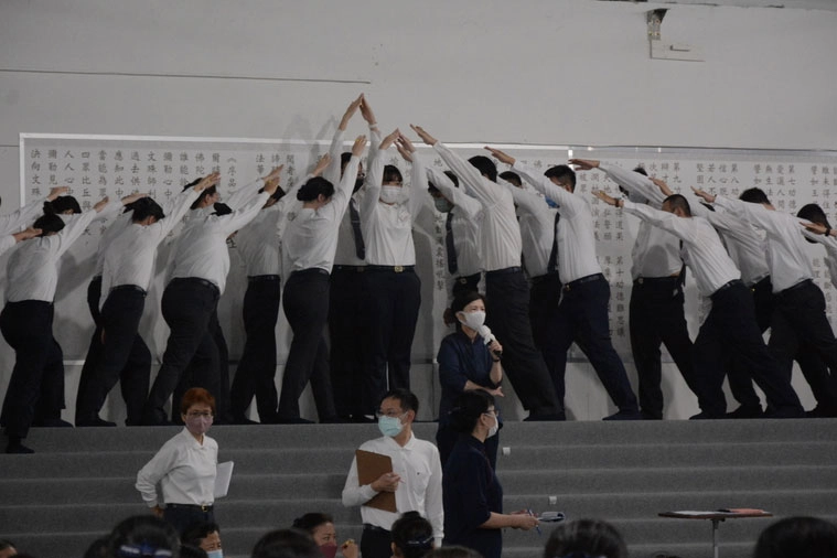 當講經堂的蓮花椅全部撤離、鋪上地標時,即進入最後驗收時刻。音樂劇企劃呂慈悅師姊多次南下,聲嘶力竭地「指導」。那時,我心中也曾浮現一絲「不悅」。但看到法親們如小學生般,嘴巴總是關不起來時,才覺得:就讓呂慈悅當「怒目金剛」吧!