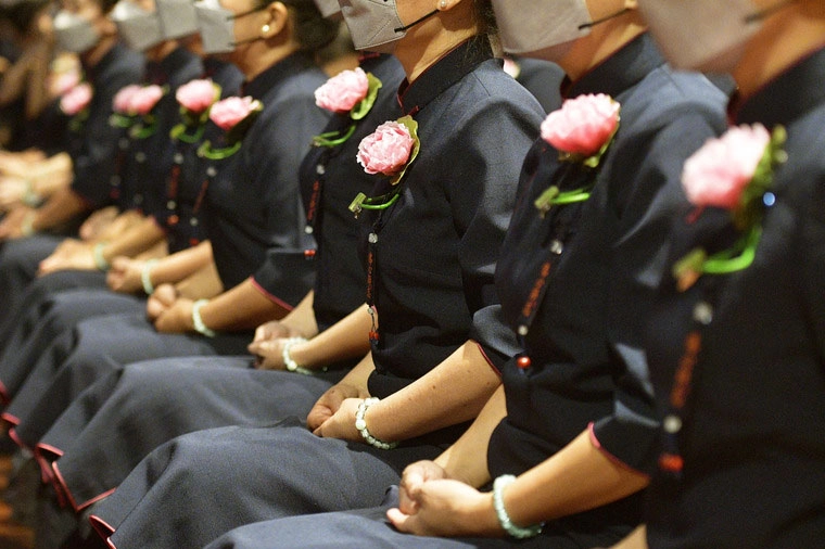授證典禮,新受證的委員慈誠,將接受上人的祝福與授證,共同承擔如來家業。(攝影:周幸弘)