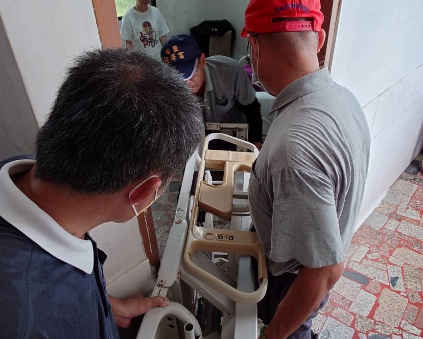嘉義輔具平台的師兄們,合力將輔具醫療床送達案家。